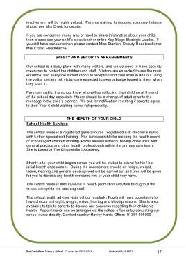school nurse directly. Contact number Hayley Harris Office: 01384 408990