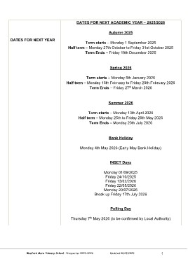 DATES FOR NEXT YEAR DATES FOR NEXT ACADEMIC YEAR – 2025/2026